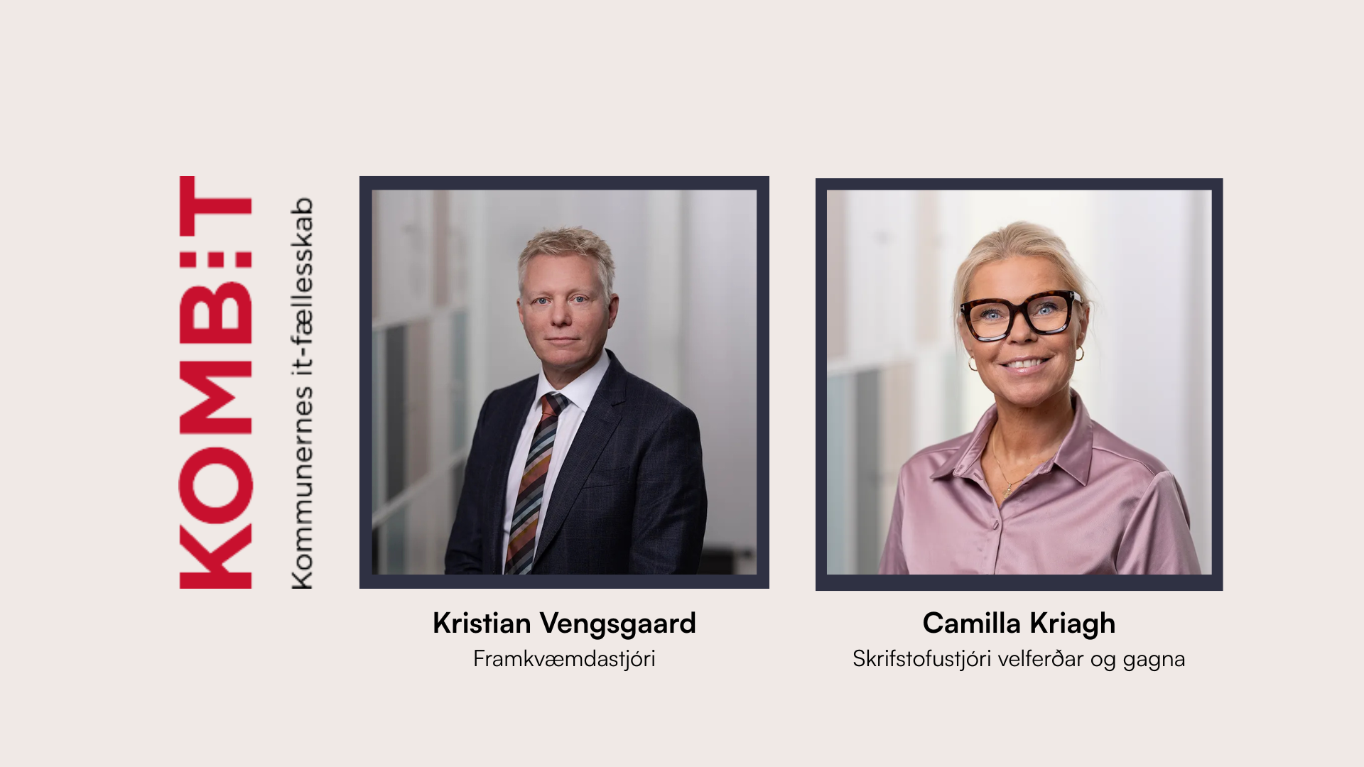 Kristian Vengsgaard, framkvæmdastjóri KOMBIT, og Camilla Kragh, skrifstofustjóri velferðar og gagna hjá KOMBIT, koma til landsins til að taka þátt í stafrænni ráðstefnu sveitarfélaga sem fram fer 25. mars næstkomandi í Grósku, en KOMBIT er sameiginlegt stafrænt þróunar- og rekstrarfélag danskra sveitarfélaga sem vinnur að hönnun, innleiðingu og rekstri stafrænnar þjónustu fyrir sveitarfélögin.