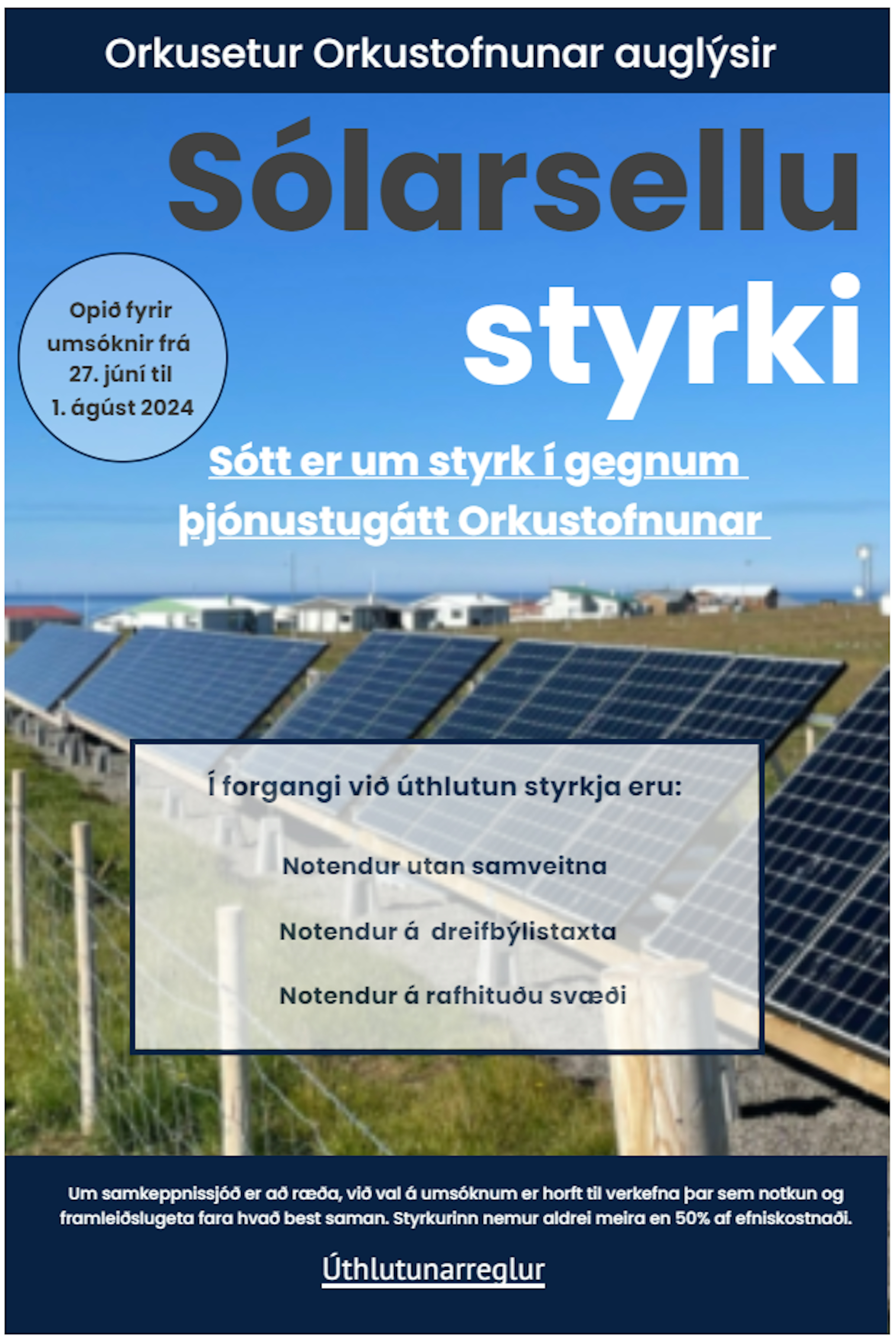 Orkusetur Orkustofnunar auglýsir eftir umsóknum um sólarsellustyrki.